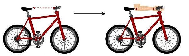 ➛ Im Idealfall befindet sich nun der Vorbau des Lenkers im Bereich der Handfläche.